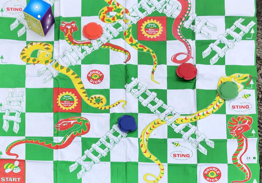Bring out the inner child.. Round up a few willing friends and start your journey around the snakes and ladders mat!!